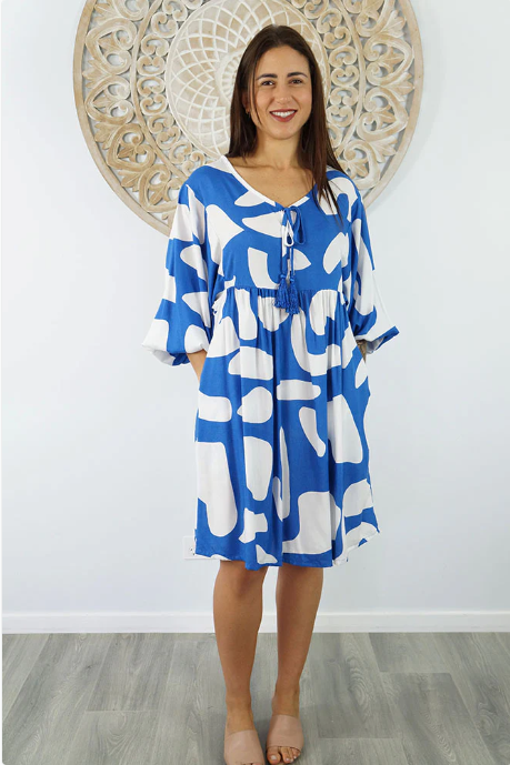 The Avocado Dress is a versatile choice for any wardrobe, providing both style and comfort. With a tie-up V-neckline and mid-length puff elastic arms, this dress also includes convenient side pockets. You will look and feel fabulous in this fabulous piece.