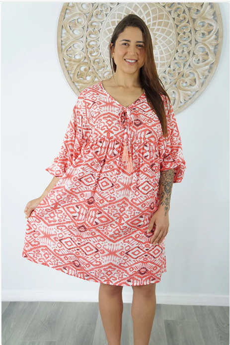 The Avocado Dress is a versatile choice for any wardrobe, providing both style and comfort. With a tie-up V-neckline and mid-length puff elastic arms, this dress also includes convenient side pockets. You will look and feel fabulous in this fabulous piece.