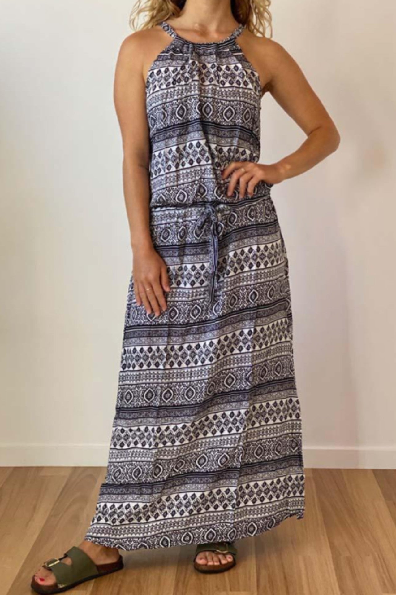 The Long Chloe Dress features a high halter neck design, elastic drawstring tie waist which allows this rayon maxi to fall beautifully on any body shape. You will be looking and feeling your best in this dress!