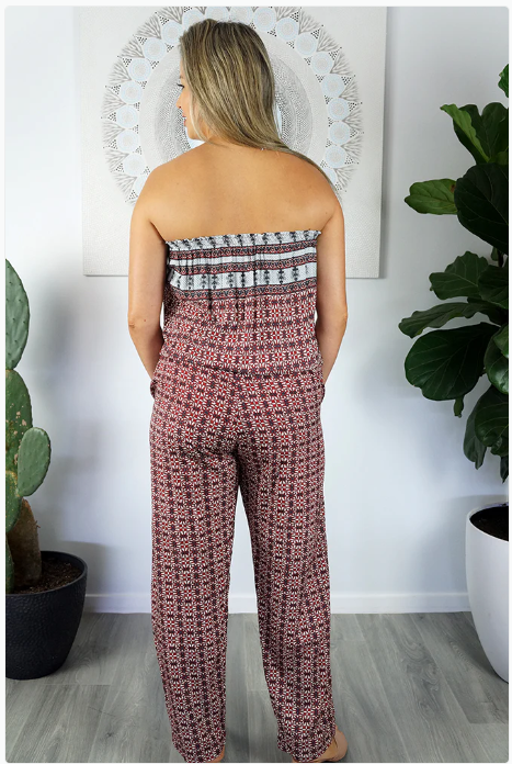 A great piece to add to your summer collection. This Jumpsuit features elastic above the bust, side pockets and tie waist for comfort for those hot summer days.