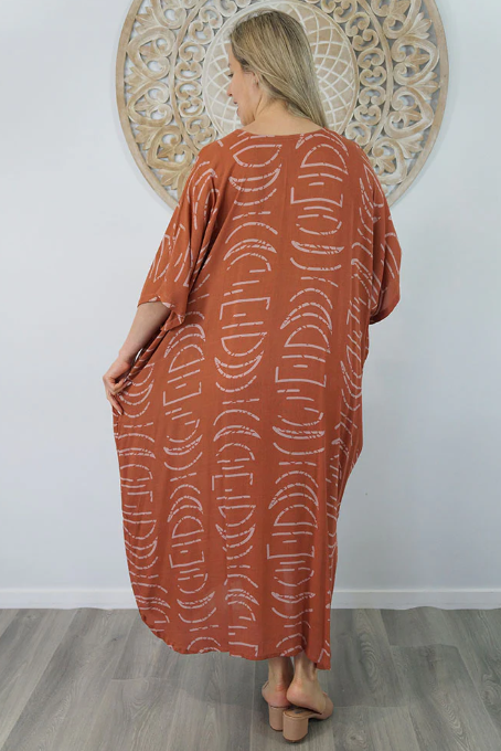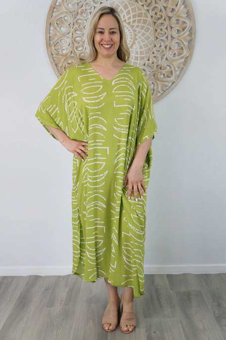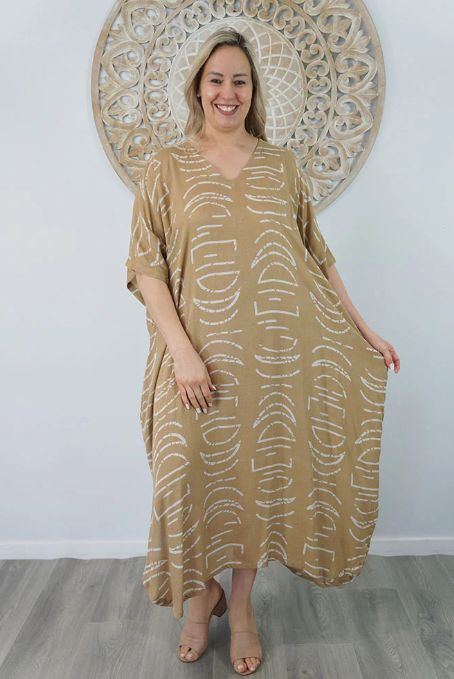 Our kaftans range from rich solid colors to funky patterns. A simple v-neck in the front, side splits on the bottom and a free size from 6-26, this product fits everyone (seriously, these fit everyone).
