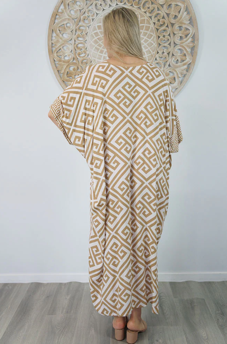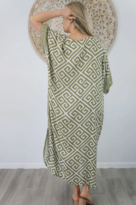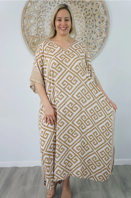 Our kaftans range from rich solid colors to funky patterns. A simple v-neck in the front, side splits on the bottom and a free size from 6-26, this product fits everyone (seriously, these fit everyone).