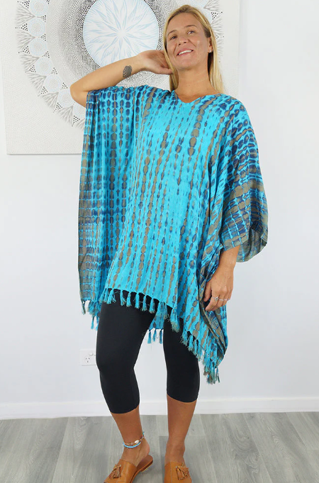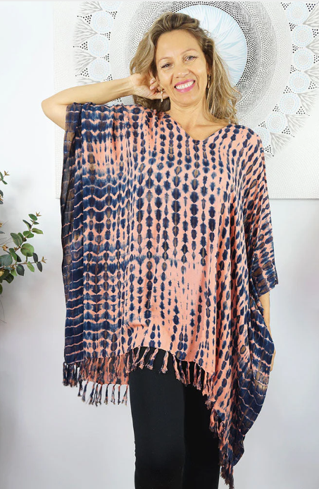 A comfortable way of relaxing around the pool or on the beach, this all rayon tunic is suitable for sizes 6 to 26.