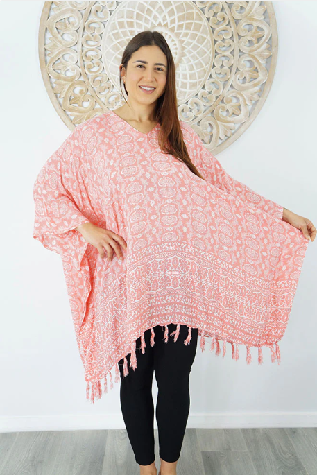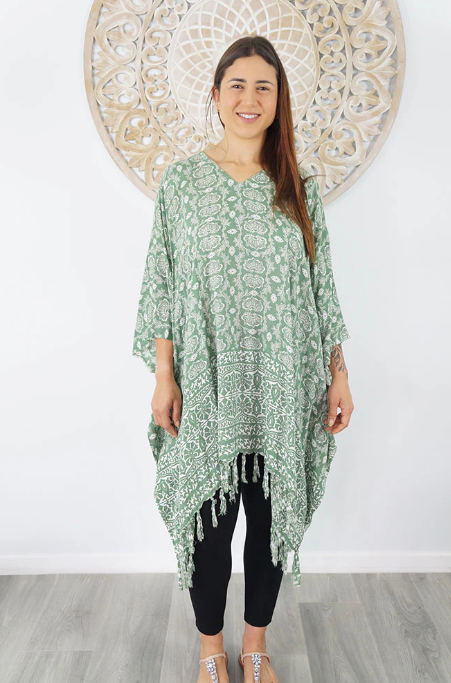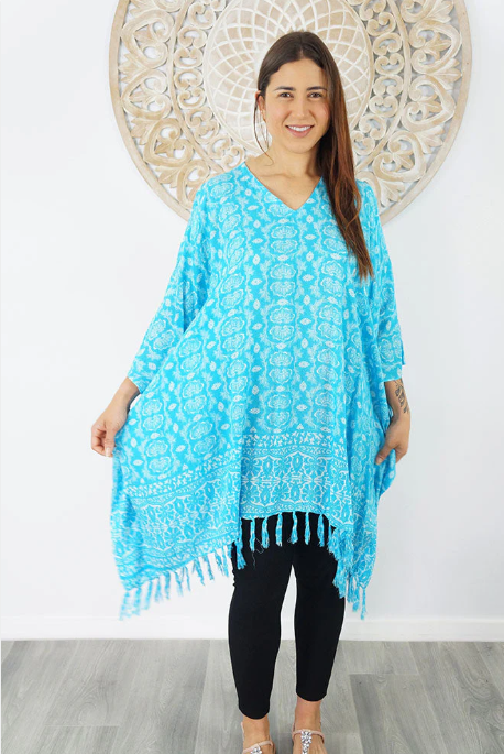 A comfortable way of relaxing around the pool or on the beach, this all rayon tunic is suitable for sizes 6 to 26.