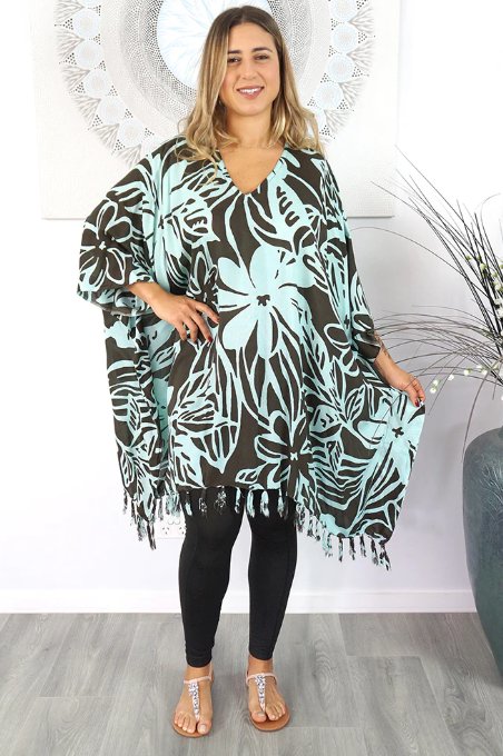 A comfortable way of relaxing around the pool or on the beach, this all rayon tunic is suitable for sizes 6 to 26.