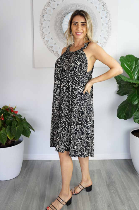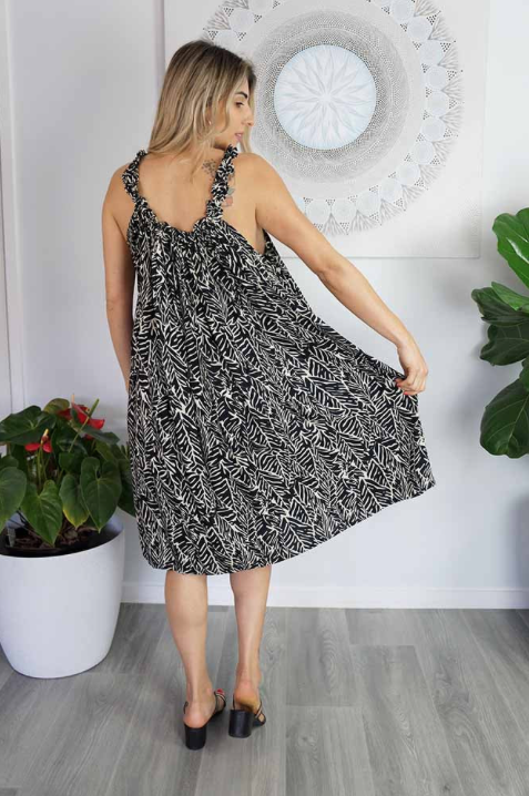 Made from a cool printed rayon, with a stylish frilled neckline.