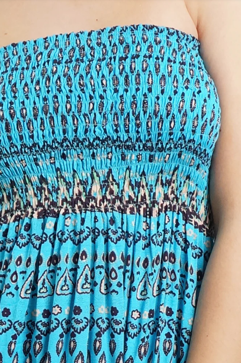A simple summer dress with extra elastic smocking for comfort.