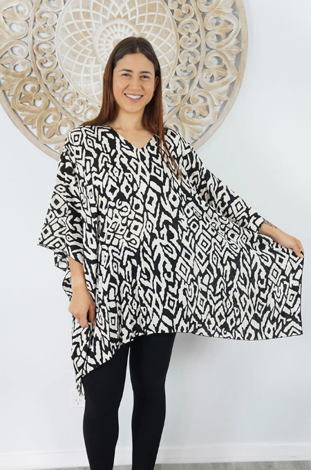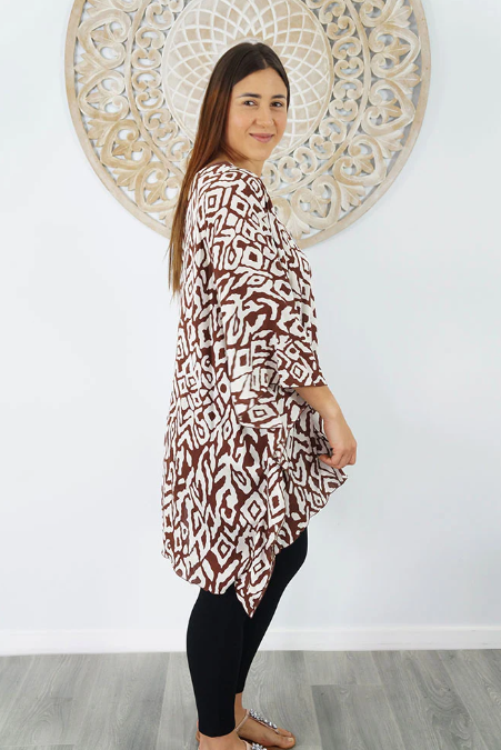 A comfortable way of relaxing around the pool or on the beach, this all rayon tunic is suitable for sizes 6 to 26.