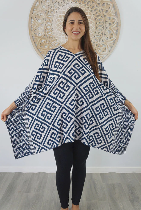 A comfortable way of relaxing around the pool or on the beach, this all rayon tunic is suitable for sizes 6 to 26.